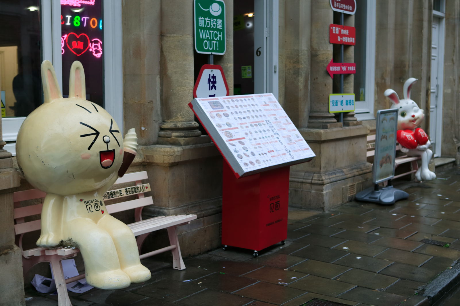 chinese restaurant in bristol with model rabbits outside